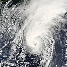 Hurricane Florence was the first North Atlantic hurricane to produce hurricane-force winds on the island of Bermuda since Hurricane Fabian in September 2003.[1] The seventh tropical storm and second hurricane of the 2006 Atlantic hurricane season, Florence developed from a tropical wave in the eastern Atlantic Ocean on September 3. Due to unfavorable conditions, the system failed to organize initially, and as a result, the storm grew to an unusually large size. After several days, Florence encountered an area of lesser wind shear and intensified into a hurricane on September 10. It passed just west of Bermuda while recurving northeastward, and on September 13 it transitioned into an extratropical cyclone.