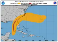 At least ten people were killed in incidents related to the hurricane: four in Florida, three in New Jersey, and one each in Delaware, Georgia, and North Carolina.[74][75][76][77][78][79][80][81]