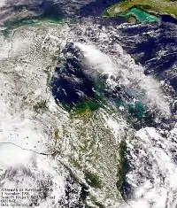 Though Mitch never entered Nicaragua, its large circulation caused extensive rainfall, with estimates of over 50 inches (1,300 mm).[11] In some places, as much as 25 inches (630 mm) of rain fell on coastal areas.[26] The flank of the Casita Volcano failed and turned into a lahar from excessive rain. The resulting mudslide ultimately covered an area 10 miles (16 km) long and 5 miles (8.0 km) wide.[11]