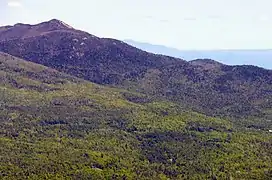 Hurricane Mountain is a 3,688-foot-tall (1,124 m) mountain near Keene in the north of the High Peaks region of the Adirondacks in New York, United States. It is considered to boast some of the most impressive views of any of the lesser peaks; this is due to its prominence, and because its summit was cleared by Verplanck Colvin in the course of his early survey of the Adirondacks.[2] On a clear day, the length of Lake Champlain and the Green Mountains of Vermont are visible to the east, and many of the High Peaks can be seen to the south through the northwest. There is a disused fire tower on the top.