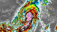 ![]() Patricia shortly after its record peak intensity on October 23, while approaching Western Mexico. | |