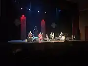 Since the group's inception, Huun Huur Tu has collaborated with musicians from many genres, such as Frank Zappa, Johnny "Guitar" Watson, the Kodo drummers, The Moscow Art Trio, the Kronos Quartet, The Chieftains and Bulgarian women's singing group, Angelite.[5][6][7][8] Their recording "Eternal" is a collaborative effort with underground electronic musician, Carmen Rizzo.[9] Huun Huur Tu appeared on three songs on Bahamut, the debut of New York-based blues group Hazmat Modine. In January 2010, Hazmat Modine also announced plans to record with Huun Huur Tu again.[10]