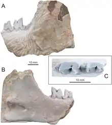 - ↑ Leidy J. (1869.) "On the extinct Mammalia of Dakota and Nebraska: including an account of some allied forms from other localities, together with a synopsis of the mammalian remains of North America." Journal of the Academy of Natural Sciences Philadelphia 7: 1–472.