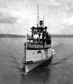 Hyak was built at Portland, Oregon in 1909 at the shipyard of Joseph Supple for the Kitsap County Transportation Company.[1][2] The vessel was 134 feet (40.8 m), rated at 195 tons, and was equipped with a triple expansion steam engine with cylinders 12, 18 and 32 inches in diameter with an 18-inch bore stroke on all cylinders.[1] The engine worked on steam produced at 225 pounds of pressure, and generated 750 horsepower.[1] Hyak was brought up from the Columbia River around the Olympic Peninsula by Capt. J.J. Reynolds. It was reported that during this trip the vessel was at times able to reach a speed of 20 miles per hour.[1]