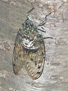 - ↑ Marshall, David C.; Moulds, Max; Hill, Kathy B. R.; Price, Benjamin W.; et al. (2018). "A molecular phylogeny of the cicadas (Hemiptera: Cicadidae) with a review of tribe and subfamily classification". Zootaxa. Magnolia Press. 4424 (1): 1–64. doi:10.11646/zootaxa.4424.1.1. PMID 30313477.