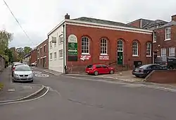 The building was designed by Sir John Soane and completed in 1795.[2] After a period as a school operating under the leadership of the Reverend Charles Richards,[1] and then as a local headquarters for the Salvation Army,[3] it became the headquarters of the Hampshire Yeomanry Cavalry (Carabiniers) in the late 19th century.[2] The regiment was mobilised at the drill hall in August 1914 before being deployed to the Western Front.[4] After the regiment converted to an artillery unit, the hall was decommissioned and converted for retail use. It is currently used as a carpet showroom.[2][5]