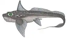 These 40-cm-long fishes have an unusual appearance; they have wing-like pectoral fins, a pointed dorsal fin, and a long, whip-like tail. The fish can see in practically total darkness and sense electromagnetic radiation (outside of the visible spectrum) emitted by other marine creatures due to exposed nerves on the sides of its body.