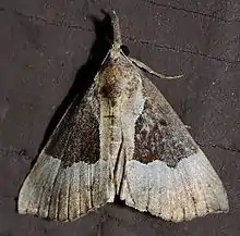 Hypena bijugalis, the dimorphic bomolocha, dimorphic hypena or toothed snout-moth, is a moth of the family Erebidae. The species was first described by Francis Walker in 1859. It is found in North America from Nova Scotia across southern Canada to Vancouver Island, south over the whole United States to Florida.