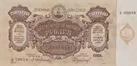 The People's Bank was abolished altogether in January 1920, with the issuance of currency transferred to the People's Commissariat of Finance (Narkomfin).[16] The decree shutting down the People's Bank made provision for continued use of the offices of Narkomfin for private finance on a limited and seemingly temporary basis: