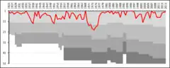 As the club gained success in European club tournaments in the 1980s and 1990s, and thousands of IFK fans travelled to Hamburg, Barcelona, Dundee, Milan, Manchester and Munich, the supporters gained influence on the club, for example by lending money to the almost bankrupt IFK Göteborg so the team could go to Valencia to play the quarter-final in the UEFA Cup in 1982, or by being the main force behind the move back to Gamla Ullevi in 1992.[22][66] The early 1990s saw a downward trend in attendance numbers, even though the club was successful on the pitch, but the trend turned in the later years of the decade and the first few years of the new millennium brought the club's highest average attendance since the early 1980s.[67]