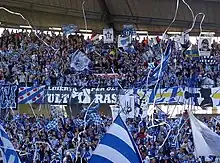 In the 2000s, supporter culture in Sweden started to shift from being English-influenced to being more influenced by the Southern European countries and their football culture, making tifos and ultras a common sight in Swedish arenas. From acting as an almost uniform group of fans gathered under the same flag, (Änglarna), IFK fans created separate supporter factions, including Ultra Bulldogs, Young Lions and West Coast Angelz. IFK is the most popular football club in Sweden;[25] a 2004 survey concluded that IFK Göteborg had support from 13% of Swedish football fans,[68] and surveys in 2016 and 2017 again confirmed that IFK was the most popular club in Sweden, with a support of 10%.[69] A majority, 55%, of football fans in Gothenburg support IFK, and the club is the fourth most popular in Stockholm (after AIK, Djurgårdens IF and Hammarby IF) and the second most popular in Malmö, after Malmö FF.[68]
