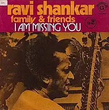 "I Am Missing You" is a song by Indian musician Ravi Shankar, sung by his sister-in-law Lakshmi Shankar and released as the lead single from his 1974 album Shankar Family & Friends. The song is a rare Shankar composition in the Western pop genre, with English lyrics, and was written as a love song to the Hindu god Krishna. The recording was produced and arranged by George Harrison, in a style similar to Phil Spector's signature sound, and it was the first single issued on Harrison's Dark Horse record label. Other contributing musicians include Tom Scott, Nicky Hopkins, Billy Preston, Ringo Starr and Jim Keltner. A second version appears on Shankar Family & Friends, titled "I Am Missing You (Reprise)", featuring an arrangement closer to a folk ballad.
