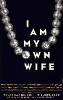 I Am My Own Wife began with Moises Kauffman and Doug Wright at About Face Theatre in Chicago in 2002, and moved to Broadway in 2004 where it won the Tony Awards for Best Actor in a Play (Mays) and for Best Play.[2] It was first produced as a workshop in July 2001 at the La Jolla Playhouse in La Jolla CA.[3]