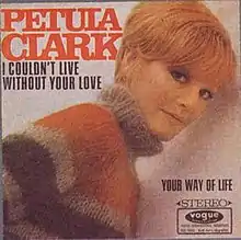 "I Couldn't Live Without Your Love" is a 1966 single written by Tony Hatch and Jackie Trent and recorded by Petula Clark. It was inspired by the affair the songwriters were having at the time. Clark has cited "I Couldn't Live Without Your Love" along with "Don't Sleep in the Subway" as her favorites of her hits.[1] “I still love that one; I do it onstage with great joy,” Clark told the "Montreal Gazette" in 2017.