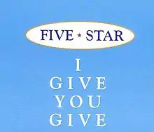 "I Give You Give" is a 1995 single by the British pop group Five Star. It was the band's final single as a five piece band, and was released on their family label Tent Records. The single reached #83 in the UK Singles Chart.[1]