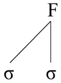 An alternative metrical tree representation of an iamb. F = foot, σ = syllable. The head of the foot constituent, i.e. the stressed syllable, is indicated with a vertical line.