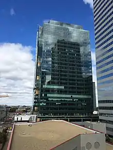 The Edmonton Tower[26] is a 29-storey 129.84-metre (426.0 ft) tall, office building in the Ice District area of Edmonton. It was topped-out in early spring 2016, and completed in December 2016. City of Edmonton staff began moving to the tower in November 2016.[25][26][34] It is Edmonton's eighth tallest building.[35]