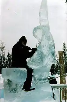 Mexican sculptor Abel Ramírez Águilar working on an entry for an ice sculpture competition