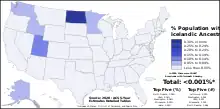 ![]() Percent of the population with Icelandic ancestry by state | |