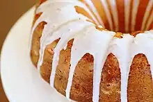 Icing, or frosting,[1] is a sweet, often creamy glaze made of sugar with a liquid, such as water or milk, that is often enriched with ingredients like butter, egg whites, cream cheese, or flavorings. It is used to coat or decorate baked goods, such as cakes. When it is used between layers of cake it is known as a filling.