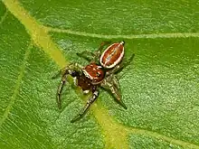 Icius hamatus is a species of 'jumping spiders' belonging to the family Salticidae.