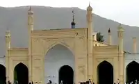 Eid Gah Mosque or Id Gah Mosque (Dari: مسجد عیدگاه), is the second largest mosque in Kabul, the capital of Afghanistan. It is considered the cardinal religious mosque in the country, where a million people offer Eid prayers twice a year. It is located near the Mahmud Khan bridge and National Stadium in the eastern part of the city, in the Shar-e-barq of Kabul, which is one of the wealthier areas of the city. The "Id Gah" or "Eid Gah" refers to an open space where people congregate during national and religious celebrations. The open grounds of Id Gah are also used as a parking lot for trucks that transport goods to and from Peshawar.[1]