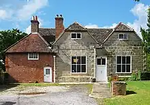 The cottage now known as the Meeting House Cottage, at 5 Langley Lane, is two centuries older than the meeting house itself. It is a two-storey timber-framed cottage built in the late 15th century. Robert Robinson owned it and the adjacent land in the late 17th century; he passed the cottage, his blacksmith workshop and all the surrounding land to the local Quaker community in 1674. As a result, the meeting house was built on to its eastern side. A red-brick facing was applied to the south face in the 18th century, and the west side is partly brick-faced and partly tiled. The roof is also tiled, and held up inside by crown posts. English Heritage classified the cottage, which is still used by the warden of the meeting house, as a Grade II* listed structure on 23 February 1983.[4]