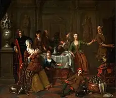 - ↑ Ignace van der Becken, 1689 – 1774, zug., Zwei Gesellschaftsszenen in einem vornehmen Interieur, at Hampel