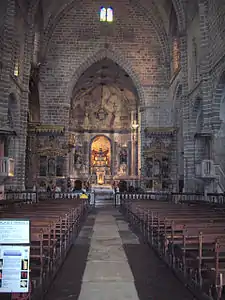 The church shows majestic proportions : 36 x 34 x 24 m. The single, groin-vaulted nave gives a wide impression, accentuated by the white mortar on the walls and the columns. This is the largest nave of this kind to be found in Portuguese churches. The spacious vault of the crossing rests on ogival arches. The father of Portuguese drama Gil Vicente is buried at the left side of the entrance.