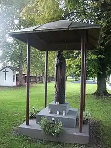Ilača is the most important Catholic pilgrimage site in the historical region of Syrmia.[7] The Marian Ilača apparitions were reported in 1865, seven years after the famous Lourdes apparitions.[7] Shepard from Ilača Petar Lazin claimed that he saw a water on the middle of the field road although there was no rain, and that once he made a whole the water source started there that haven't stop since that time.[7] At the same night, another villager, young Đuka Ambrušević saw a Virgin Mary with a child in his dream and she told him that it is her water spring, that he need to build a small wall around it so that stock don't drink from it.[7] When he woke up he saw the image from his dream next to his bed.[7] Initially church authorities tried to prevent congregation from pilgrimage.[7] Later it was permitted by progressive bishop Josip Juraj Strossmayer.[8] In 1866 small chapel was built next to the spring, and in 1870 construction of a church started.[7] Ilača became target of pilgrimage for Roman Catholic Croats, Germans, Hungarians as well as for Eastern-rite Catholic Pannonian Rusyns.[7] During the Croatian War of Independence church was destroyed by tanks of Yugoslav People's Army active in the area of self-proclaimed Serbian Autonomous Oblast of SAO Eastern Slavonia, Baranja and Western Syrmia.[7] Once the UNTAES finished its peace mission in the Eastern Slavonia, Baranja and Western Syrmia in 1998 pilgrimage started once again to take place.[7]