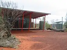 Located 165 kilometres (103 mi) west of the South Australia border, the roadhouse is the only fuel and supplies depot on the 1,300-kilometre (810 mi) desert track between Laverton and Coober Pedy known as the Anne Beadell Highway.[3]It is 600 kilometres (370 mi) east of Laverton and 750 kilometres (470 mi) west of Coober Pedy. The nearest community is Cosmo Newberry, 200 kilometres (120 mi) to the west, making this the most isolated roadhouse in Australia.[8]