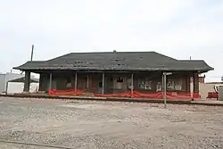 Illinois Central Passenger Depot-Storm Lake, also known as the Storm Lake Depot, was an historic building located in Storm Lake, Iowa, United States. The Iowa Falls & Sioux City Railroad, an Illinois Central Railroad (IC) subsidiary, built the first tracks through town in 1870. They also built a two-story frame combination freight and passenger depot the same year. The present depot is a second generation IC structure built of brick. The building's architectural style is Prairie School with Tudor Revival elements in the dormer and canopy ends. It was designed by IC architect E.E. Bihl, and it is similar to the railroad's depots in Flossmoor, Illinois and Fort Dodge, Iowa.[2] The new passenger depot was completed in August, 1915, and the old depot was re-purposed for a dedicated freight depot. It was torn down sometime before 1948. Passenger service remained high during the 1910s and 1920s, with the decline accelerating after World War II, and it ended all together in the late 1960s. While freight trains continue to use the IC's tracks, the depot has been abandoned. It was listed on the National Register of Historic Places in 1990.[1] The Storm Lake Illinois Central depot was demolished on February 25, 2013.