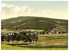 The later 19th century brought a boost to the town's development: the former 2000 people-small town arose to an industrial centre of glass, porcelain and toy production. Furthermore, mining saw a resurgence by gaining fluorite and Braunstein (manganese ore).[8][9][10] After being connected by railway in 1879, the industrial revolution reached the town. Some factories for porcelain (Graf von Henneberg Porzellan since 1777), glasswares (the Sophienhütte since 1852) and toys developed and grew until the Great Depression. It weakened especially private consumption, so that Ilmenau's toy industry collapsed, same as some porcelain producers focused on bibelot.