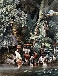 ![]() Filipino Women Washing Beneath a Banana Tree, by C. W. Andrews, main illustrator of Ilustración Filipina' | |