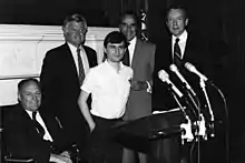 His election to People's Deputies Congress had been received with great interest in America: The founder and chairman of the US National Organization on Disability, Alan A. Reich, had congratulated Ilya Zaslavskiy via phone call in April 1989; shortly after, Senator Bob Dole – himself a war-disabled veteran of WWII – invited the young people's deputy to Washington, D.C.[17] On September 7, 1989, Zaslavskiy, Reich, Dole, and Edward Kennedy, who had sponsored the Americans with Disabilities Act in the United States Senate,[18] met to discuss disability rights at the Capitol.[17] Subsequently, Zaslavskiy was appointed to the World Committee for the United Nations Decade of Disabled Persons.[17]