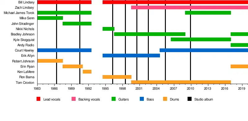 | Past members | Mike Senn Meaty" Robert Johnson John Stradinger Tom Croxton Ken LaMere Erik Allyn (Mitchell) Nikki Nichols (David O'Steen) Ron Barna Michael James Torok |