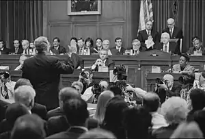Impeachment proceedings were held during the post-election, "lame duck" session of the outgoing 105th United States Congress.[28] Unlike the case of the 1974 impeachment process against Richard Nixon, the committee hearings were perfunctory but the floor debate in the whole House was spirited on both sides.
