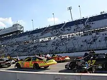 The first impound races in NASCAR were implemented during the 2005 season. The concept of the impound race was designed to limit the costs of racing, and thus make it more affordable for all teams. This was to have the effect of leveling the playing field between the small limited budget teams and well financed multi-car teams. Initially these new rules were confusing, limited schedules, and made the events hectic for the teams. Over time NASCAR adjusted, tweaked, and changed the rules so they were less imposing.[1] In 2005 a total of 21 out of the scheduled 36 races were run as impound races. The NASCAR series (Nextel at that time) director John Darby said "Ultimately, all the teams will arrive at the track with a focus on one goal," ... "That goal will be to have the best possible race setup, and hopefully that will enhance the overall competitive element throughout the field." The displeasure of the drivers, owners, and team members forced NASCAR to back pedal from 21 impound races in 2005, to a total of 5 races in 2006.[2]