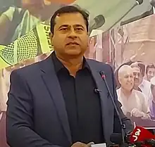 Former Prime Minister of Pakistan Imran Khan strongly protested the "arbitrary arrest" and called on the public as well as the media to "unite and stand up against this fascism."[18] Former official Asad Umar stated that PTI party workers will stage protests at press clubs throughout the country for what he said is an "attempt to suppress freedom of expression".[11][13][7] Immediately following the arrest, reports[11] showed a wide condemnation of the treatment and expressions of concern stemming from similar ideological grounds favoring free speech, including that of academic and activist Ammar Ali Jan, who warned of the irrationality in "clumsy" uses of force in a "battle of ideas."[11]