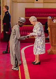 ![]() Imrana Alhaji Buba receiving the 2016 Queen's Young Leaders Award from Her Majesty Queen Elizabeth II | |