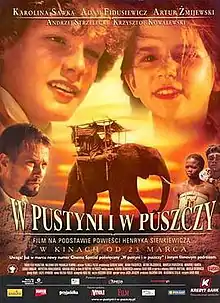 In Desert and Wilderness (Polish: W pustyni i w puszczy) is a 2001 Polish film directed by Gavin Hood.[2] Adapted from the 1911 novel In Desert and Wilderness by Henryk Sienkiewicz,[3] it tells the story of two children, Staś Tarkowski and Nel Rawlison, kidnapped by the rebels during Mahdi's rebellion in Sudan.