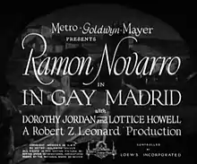 In Gay Madrid (1930) is an American pre-Code musical comedy, directed by Robert Z. Leonard, starring Ramón Novarro and Dorothy Jordan, and released by Metro-Goldwyn-Mayer.