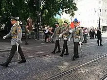 Zuzana Čaputová became the commander-in-chief of the Slovak Armed Forces immediately after the inauguration, the military parade was held in front of the Slovak National Theatre at the Hviezdoslav's square led by Chief of the General Staff of the Slovak Armed Forces, Lieutenant General Daniel Zmeko.[9][10]