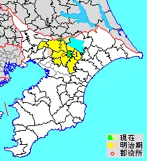 Orange: ceded from Inba to Chiba District (Yachiyo Town) in 1954