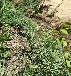 Rivulet near the source of Incline Creek just above Tahoe Rim Trail east of Highway 431 with Jessica's stickseed (Hackelia micrantha) blue flowers.