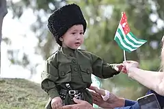 ![]() An Abkhaz boy wearing traditional Abkhazian clothing during the independence day celebrations in 2017. | |