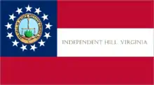 Unofficial flag of Independent Hill, Virginia, based on the First National Flag of the Confederate States of America and the regimental colours of the Prince William Cavalry, raised at the nearby county courthouse in 1861.