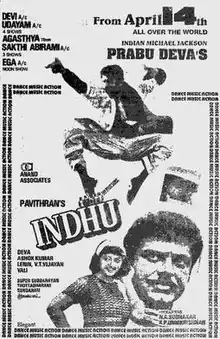 Indhu is a 1994 Indian Tamil-language dance film directed by Pavithran and produced by N. A. Sudhakar and K. P. Unnikrishnan. The film featured Prabhu Deva, appearing in his first leading role as the newcomer, alongside Roja, while Sarathkumar and Khushbu play supporting roles. It was released on 14 April 1994.
