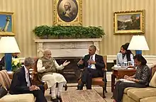 - ↑ "Readout of the President's Call with Prime Ministerial Candidate Narendra Modi of India". whitehouse.gov. May 16, 2014. Retrieved June 14, 2014 – via National Archives.