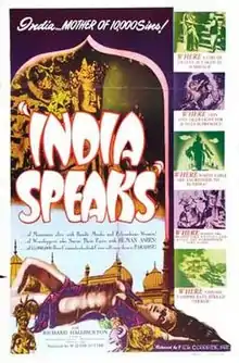 India Speaks is a 1933 Pre-Code adventure film, combining elements of documentaries and travelogue programs, mostly taking place on the Indian sub-continent along with staged bits spliced in to aid story flow. Produced by Walter Futter from a screenplay by Norman Houston, the film was directed, narrated and starring Richard Halliburton. A sequel to the popular film Africa Speaks!.